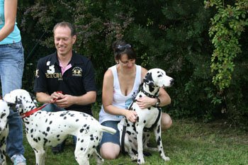 Ich bin 2 Jahre alt, wohne in Wuppertal und neben mir und meinem beiden Zweibeinern leben auch noch zwei weitere Dalmatiner in unserem Rudel: Cileo und Loni. Ja und dieses Rudel, eigentlich die beiden Zweibeiner, waren am Morgen des 26.8. auf einmal ganz geschäftig, sie erzählten immer wieder von einer geplanten Dalmatinerwanderung ganz im Kreis der großen Arabians-Stud-Familie. Mir war nicht so ganz klar, was damit gemeint sein konnte, doch schon wenige Stunden später (und ein paar „Auto-Kilometer“ weiter) wusste ich es – und mein Herz sprang freudvoll in die Höhe! Da sah ich sie doch - meine heiß geliebten „Zieheltern“; und auch Mike und Joey waren dabei. Und meine Mama Darina! Und meine Schwester Gracy! Und meine Schwester Gipsy. Und mein Bruder Gismo. Und meine vielen kleinen Geschwister aus dem H-Wurf. Und so viele meiner „Quasi-Geschwister“ aus dem I-Wurf. Und … und … und … Es waren erfreulich viele zu diesem Wandertag gekommen.