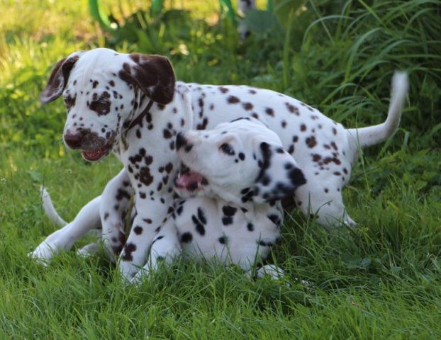 Eine schöne 8 Woche haben die Welpen erlebt .Anfang der 7.Woche war die Gehöruntersuchung mit dem fantastischem Ergebnis :alle 13 Welpen sind beidseitig hörend .Auch das Chipen und Impfen ist nun geschehen.Dann war auch die Wurfabnahme durch den Zuchtwart --und auch das haben alle mit bravour gemeistert.Ganz viel Zeit war dann noch um auf dem ganzen Grundstück zu spielen ,zu laufen ;mit den Großen zu rennen ;ein wenig Gartenarbeit zu verrichten ; mit Besuch zu kuscheln,schmusen und spielen und wieder in der Wohnung alles zu untersuchen,während Fernseher und andere Geräte laufen.Wir freuen uns ,daß sich die Welpen so toll entwickelt haben und sie nun bereit sind die große weite Welt zu entdecken und ihren Familien auf eigenen "Füßen" zu stehen !!!