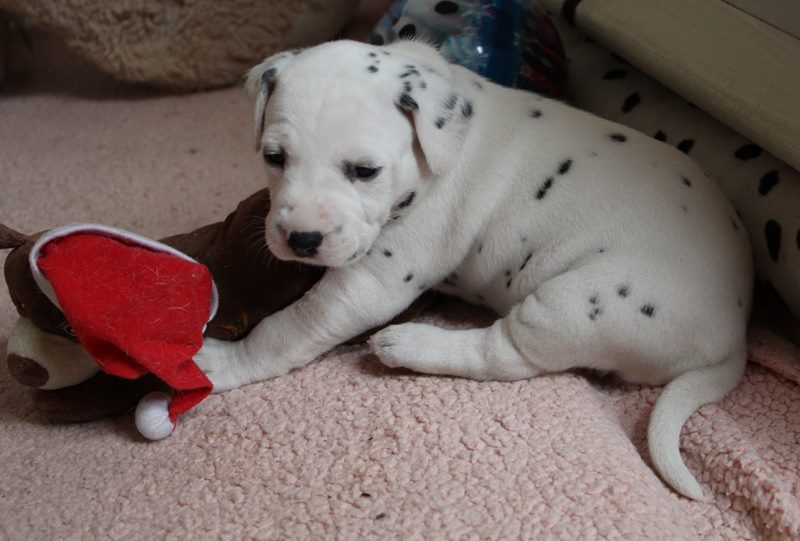 Hallihallo--uns geht es spitze!!!--Wir haben 2 Mamas !!!Natürlich unsere weltbeste Dalmimama und unsere 2.Mama .Die bringt immer Futter mit und da ist noch Joghurt drüber --lecker !--Sie sagt ,wir sollen gut essen,damit wir groß und stark werden .--Und was soll ich Euch sagen --wir essen gut und dann Abends immer Rindertartar noch !Wir haben auch schon ordentlich zugenommen von 2070 Gramm bis 2660 Gramm.
