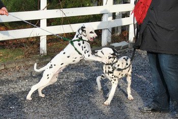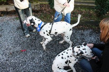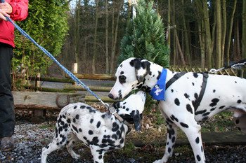 Mein Rudelchef bog grade um die letzte Kurve, als ich sie schon sah, auf dem Parkplatz darauf wartend, dass bald alle Familienmitglieder eintreffen mögen: Meine Geschwister Gino, Gipsy und Gismo, auch Gracy und meine Mama Darina, die vielen anderen Halb- und Halb-Halb-Geschwister, Nichten und Neffen, halb oder ganz, und fast der komplette J-Wurf war ja auch gekommen! Mein Herz, ja das sprang in die Höhe vor Freude! Erst recht, als ich meine Ziehmama Manuela und meinen Ziehpapa Manuel sah – da war kein Halten mehr!!! Und glaubt mir bitte: Ein Dalmi kann nicht nur lachen vor Freude, nein … er kann auch echte Freudentränen vergießen vor Glück ... Es waren so viele gekommen, um mitzuwandern, auch diesmal wieder von weither, alle sind sie dem Familienruf gefolgt – und wurden mit einem wunderbaren Tag belohnt!