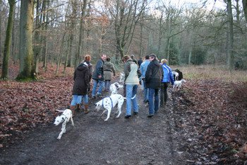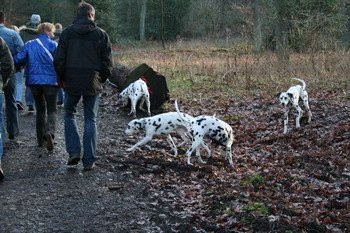 Mein Rudelchef bog grade um die letzte Kurve, als ich sie schon sah, auf dem Parkplatz darauf wartend, dass bald alle Familienmitglieder eintreffen mögen: Meine Geschwister Gino, Gipsy und Gismo, auch Gracy und meine Mama Darina, die vielen anderen Halb- und Halb-Halb-Geschwister, Nichten und Neffen, halb oder ganz, und fast der komplette J-Wurf war ja auch gekommen! Mein Herz, ja das sprang in die Höhe vor Freude! Erst recht, als ich meine Ziehmama Manuela und meinen Ziehpapa Manuel sah – da war kein Halten mehr!!! Und glaubt mir bitte: Ein Dalmi kann nicht nur lachen vor Freude, nein … er kann auch echte Freudentränen vergießen vor Glück ... Es waren so viele gekommen, um mitzuwandern, auch diesmal wieder von weither, alle sind sie dem Familienruf gefolgt – und wurden mit einem wunderbaren Tag belohnt!