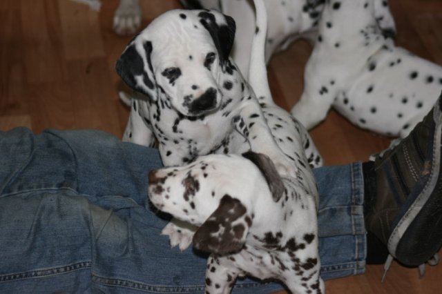 Hallo,die 7.Woche haben wir schon hinter uns--uns geht es blendend!!!Wir dürfen jetzt mit über das ganze Grundstück laufen!!!-Das ist super --da gibt es ganz viel zu sehen und die "Großen "sind auch dabei!!! Auch waren wir mit die Pferdeboxen erkunden und überall mitlaufen.--Das ist schon genial.Die Pferde haben wir gesehen und gehört--ist total interessant!!Zwischendurch kommt dann immer wieder Besuch .Einmal auch von unserer Cousine Ornella. Wir gehen mit ins Wohnzimmer ; mit Joey und Mike spielen--die sind super!!!3 Hündinnen und 1 Rüde suchen noch ihre Familien fürs Leben.Das sind Palloma;Peggy Sue;Precilla und Phönix .Na,habt Ihr nicht Interesse???Schaut Euch mal die Bilder an!!--Viel Spaß!!!