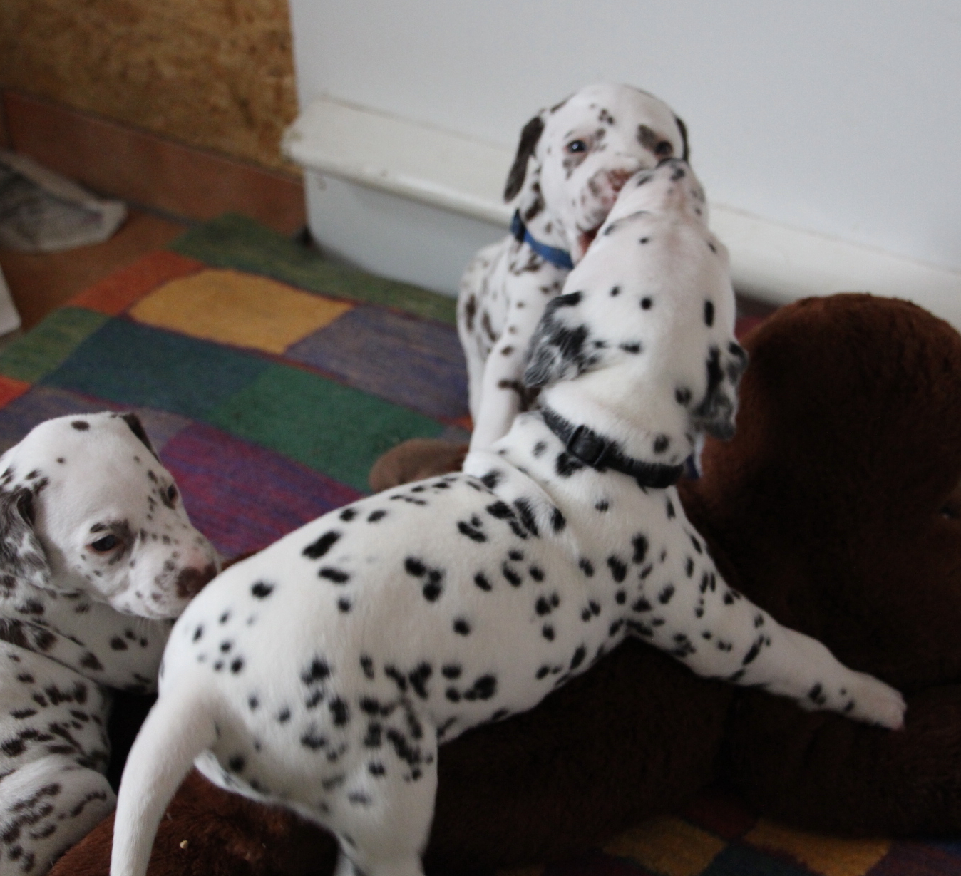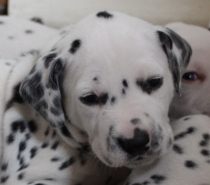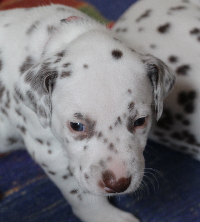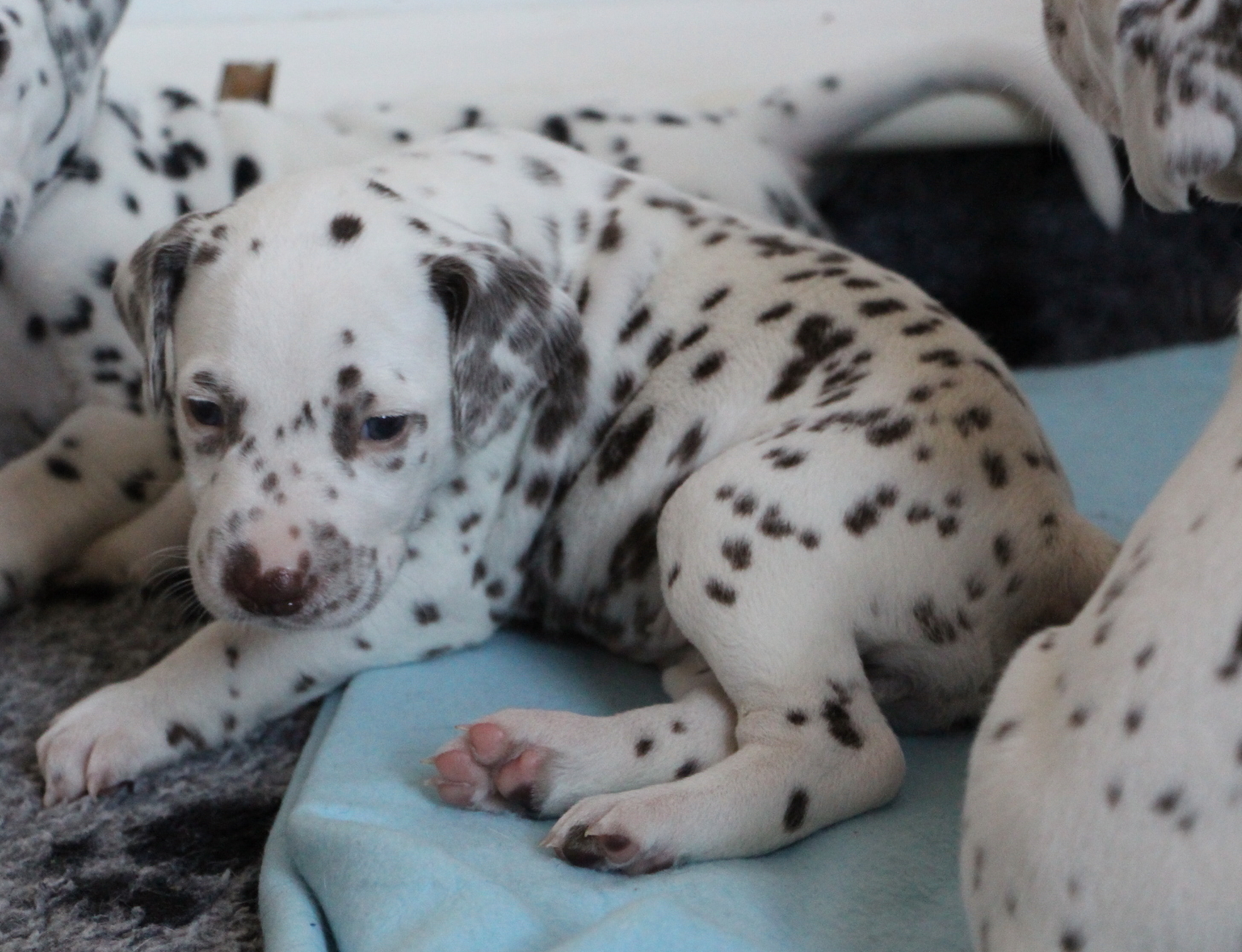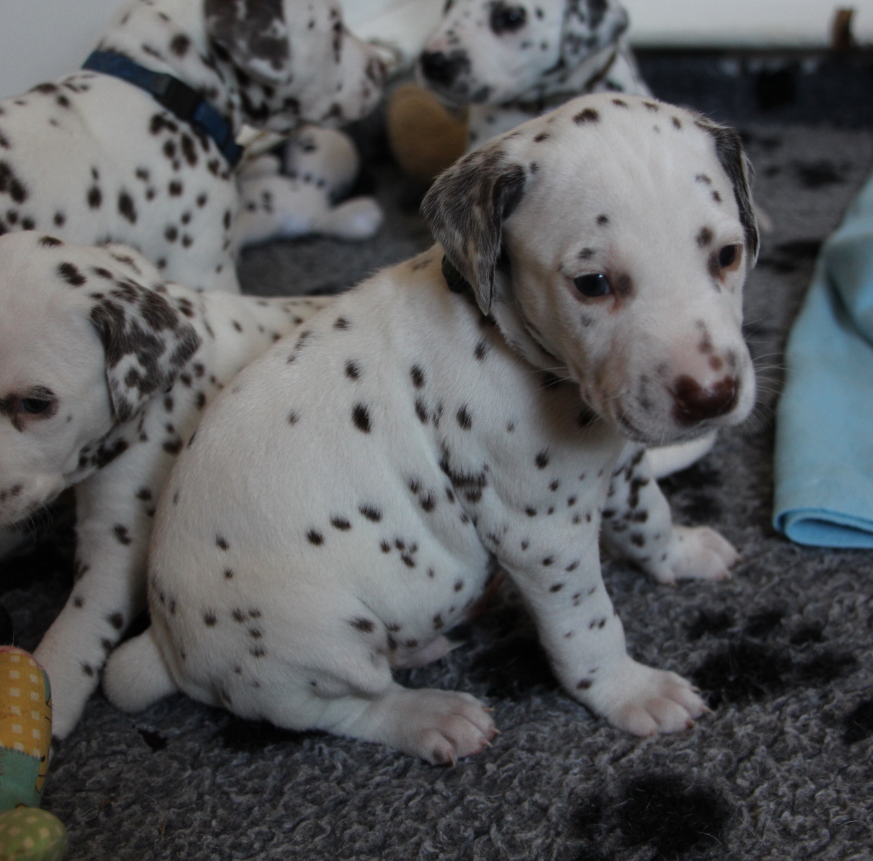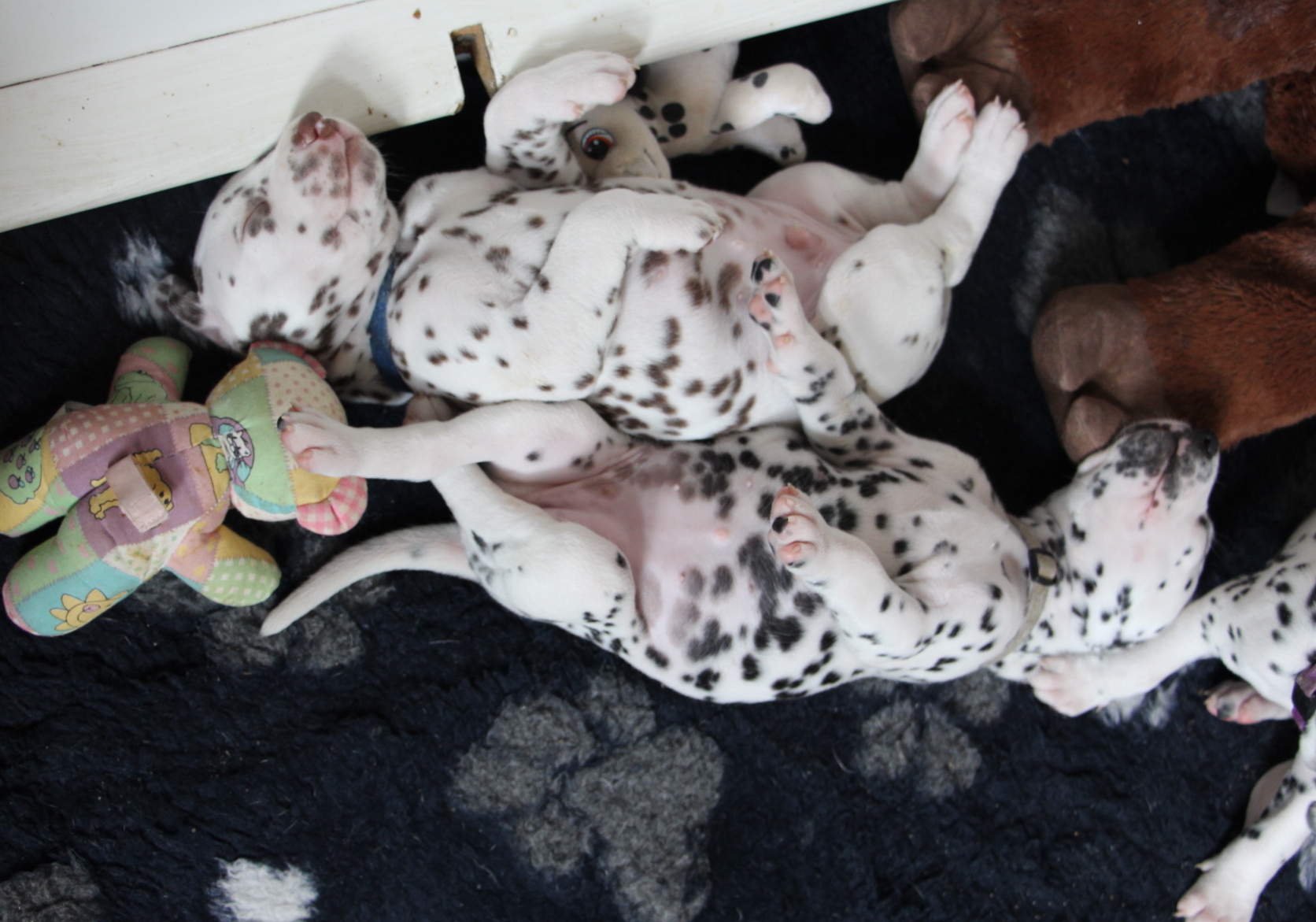 Hallihallo !!!Uns geht es Spitze!!!-Wir haben 2 Mamas --unsere allerbeste Dalmimama und unsere 2.Mama.-Die bringt immer Futter mit und da ist Joghurt drüber.--Lecker!!!-Sie sagt wir sollen gut essen ,damit wir groß und stark werden.-Was soll ich Euch sagen--wir essen gut --und abends immernoch Rindertartar !!!Wir haben auch schon ordentlich zugenommen von 2050 Gramm bis 2730 Gramm!