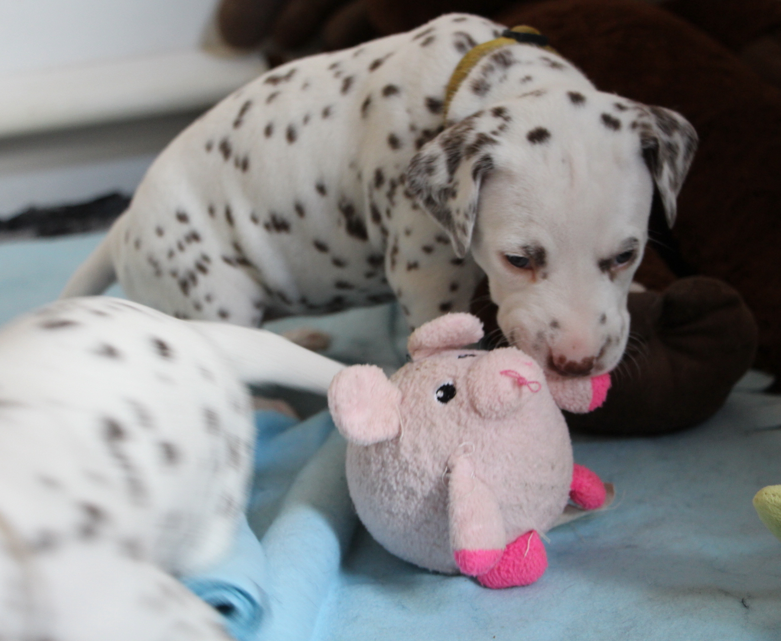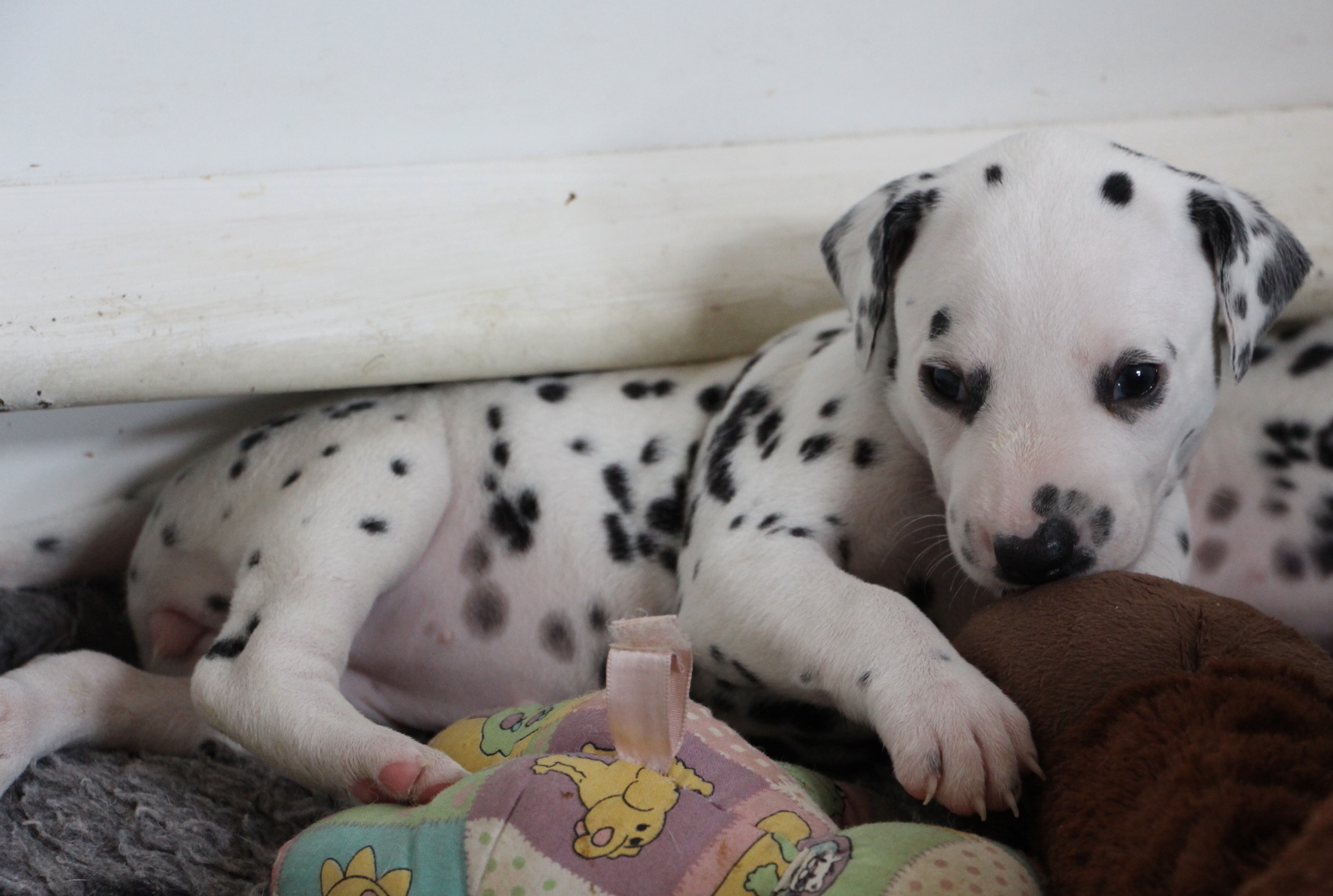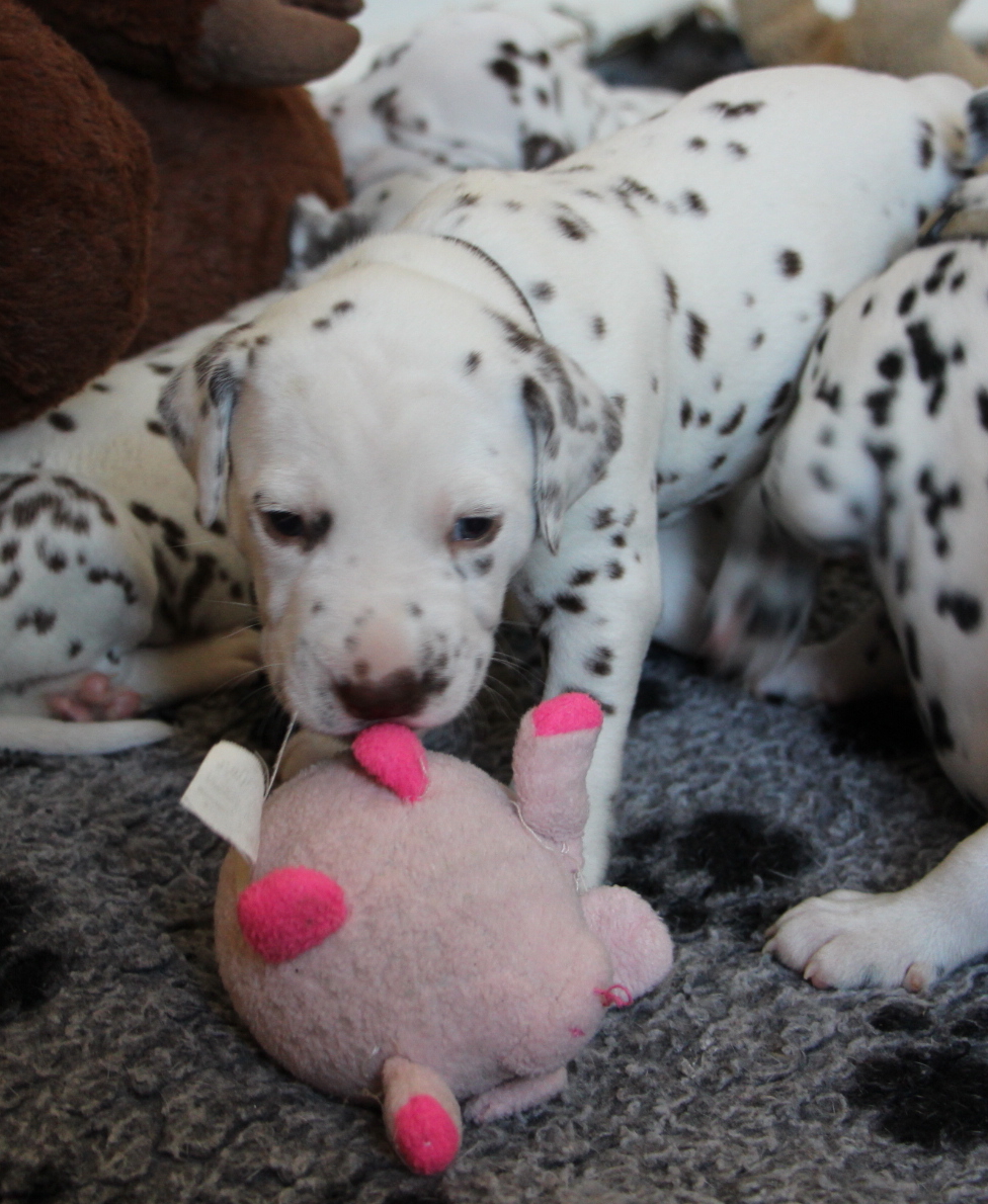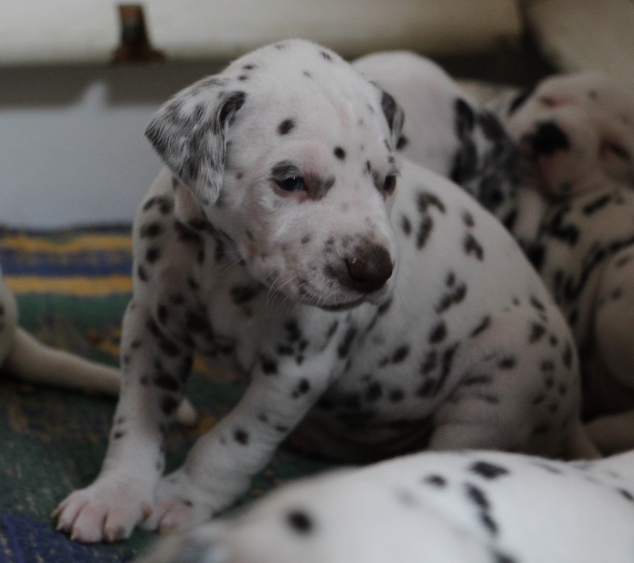 Hallihallo !!!Uns geht es Spitze!!!-Wir haben 2 Mamas --unsere allerbeste Dalmimama und unsere 2.Mama.-Die bringt immer Futter mit und da ist Joghurt drüber.--Lecker!!!-Sie sagt wir sollen gut essen ,damit wir groß und stark werden.-Was soll ich Euch sagen--wir essen gut --und abends immernoch Rindertartar !!!Wir haben auch schon ordentlich zugenommen von 2050 Gramm bis 2730 Gramm!