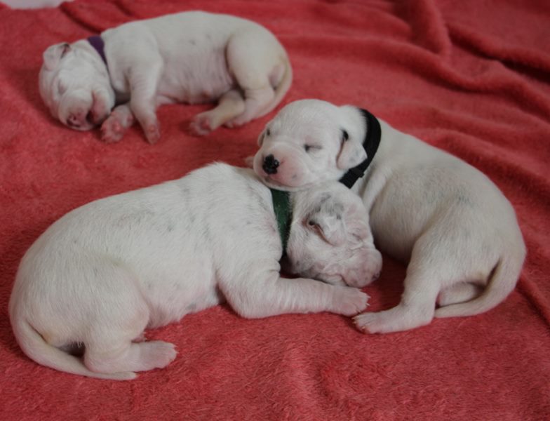 Sammeln Sie auch Punkte???--Unsere supersüßen Welpen aus dem X-Wurf auf jeden Fall !Nach und nach sind immer deutlicher die Punkte zu erkennen--jeder ganz individuell --aber soo schön !!!Die Welpen sind schon richtig flott und klettern schon auf meinen Schoß !--Sie lieben die Nähe und kuscheln schon jetzt gerne !Die Augen haben angefangen sich zu öffnen!Die Entwicklung geht jeden Tag voran!