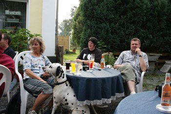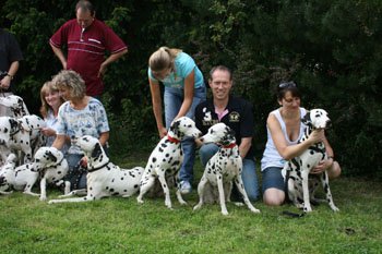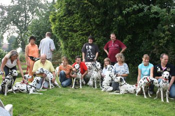 Ich bin 2 Jahre alt, wohne in Wuppertal und neben mir und meinem beiden Zweibeinern leben auch noch zwei weitere Dalmatiner in unserem Rudel: Cileo und Loni. Ja und dieses Rudel, eigentlich die beiden Zweibeiner, waren am Morgen des 26.8. auf einmal ganz geschäftig, sie erzählten immer wieder von einer geplanten Dalmatinerwanderung ganz im Kreis der großen Arabians-Stud-Familie. Mir war nicht so ganz klar, was damit gemeint sein konnte, doch schon wenige Stunden später (und ein paar „Auto-Kilometer“ weiter) wusste ich es – und mein Herz sprang freudvoll in die Höhe! Da sah ich sie doch - meine heiß geliebten „Zieheltern“; und auch Mike und Joey waren dabei. Und meine Mama Darina! Und meine Schwester Gracy! Und meine Schwester Gipsy. Und mein Bruder Gismo. Und meine vielen kleinen Geschwister aus dem H-Wurf. Und so viele meiner „Quasi-Geschwister“ aus dem I-Wurf. Und … und … und … Es waren erfreulich viele zu diesem Wandertag gekommen.