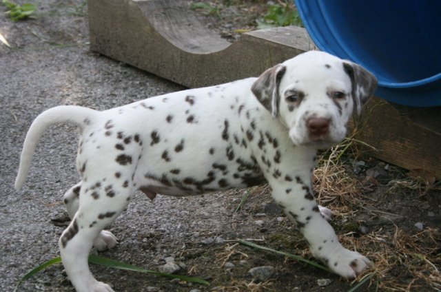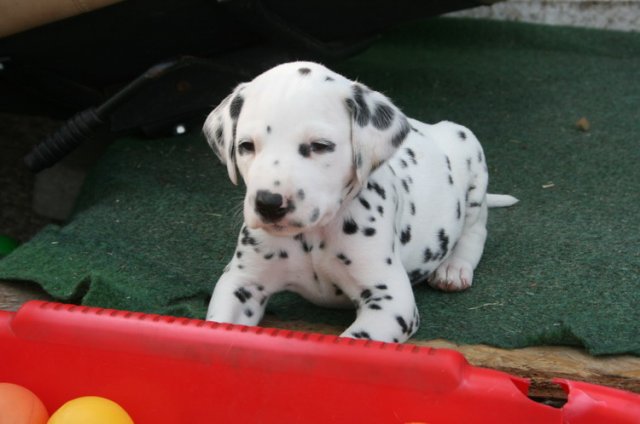 Eine Superwoche war unsere 5.Woche !!! Das Wetter ist toll und wir sind ins Welpenhaus umgezogen.Wir können drinnen und draußen spielen und toben und immer mehr gibt es zu entdecken !!!Wir hatten Besuch --auch von anderen Dalmis--es war wohl Verwandschaft von uns !!!--Wir werden bestimmt auch mal so groß!!-Dann hat unser Frauchen uns alle einzeln "getestet" wie sie sagt----danach hat sie uns alle abgeknutscht und gesagt,daß wir super hören !!!--Ja ,natürlich,wir wollen ja alles mitkriegen !!!! So,jetzt viel Spaß mit den neuen Fotos !!!