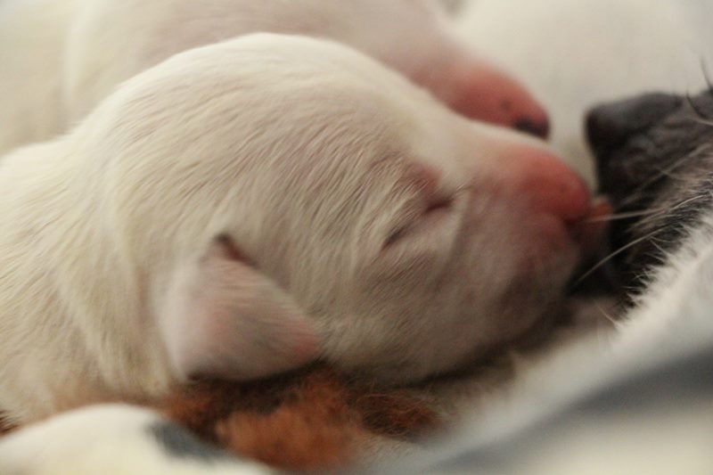 Bei einer unkomplizierten Geburt und einer super instinktsicheren Mutter ist der U-Wurf auf die Welt gekommen.14 Welpen tummeln sich jetzt in Myladys Wurfkiste.Mama und Welpen sind wohlauf und Lady zeigt mal wieder ,was für eine tolle Mutter sie ist.9 Rüden 6 weiß /schwarz und 3 weiß /braun und 5 Hündinnen 3 weiß/schwarz und 2 weiß/braun erfreuen sich bester Gesundheit und Fürsorge.Ein tolles Gefühl dieses so junge Leben um uns herum--jeder für sich ein kleines Wunder !!!