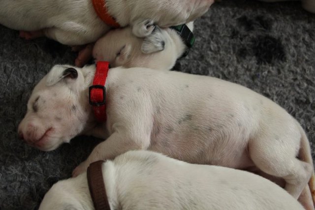 Es ist eine Freude die Welpen gedeihen zu sehen und zu erleben ,wieviel Wesensfestigkeit und Gelassenheit sie ihren Kindern von klein auf mitgeben kann.Jetzt haben die Welpen auch ihre Welpenhalsbändchen umbekommen,in die sie jetzt reingewachsen sind.