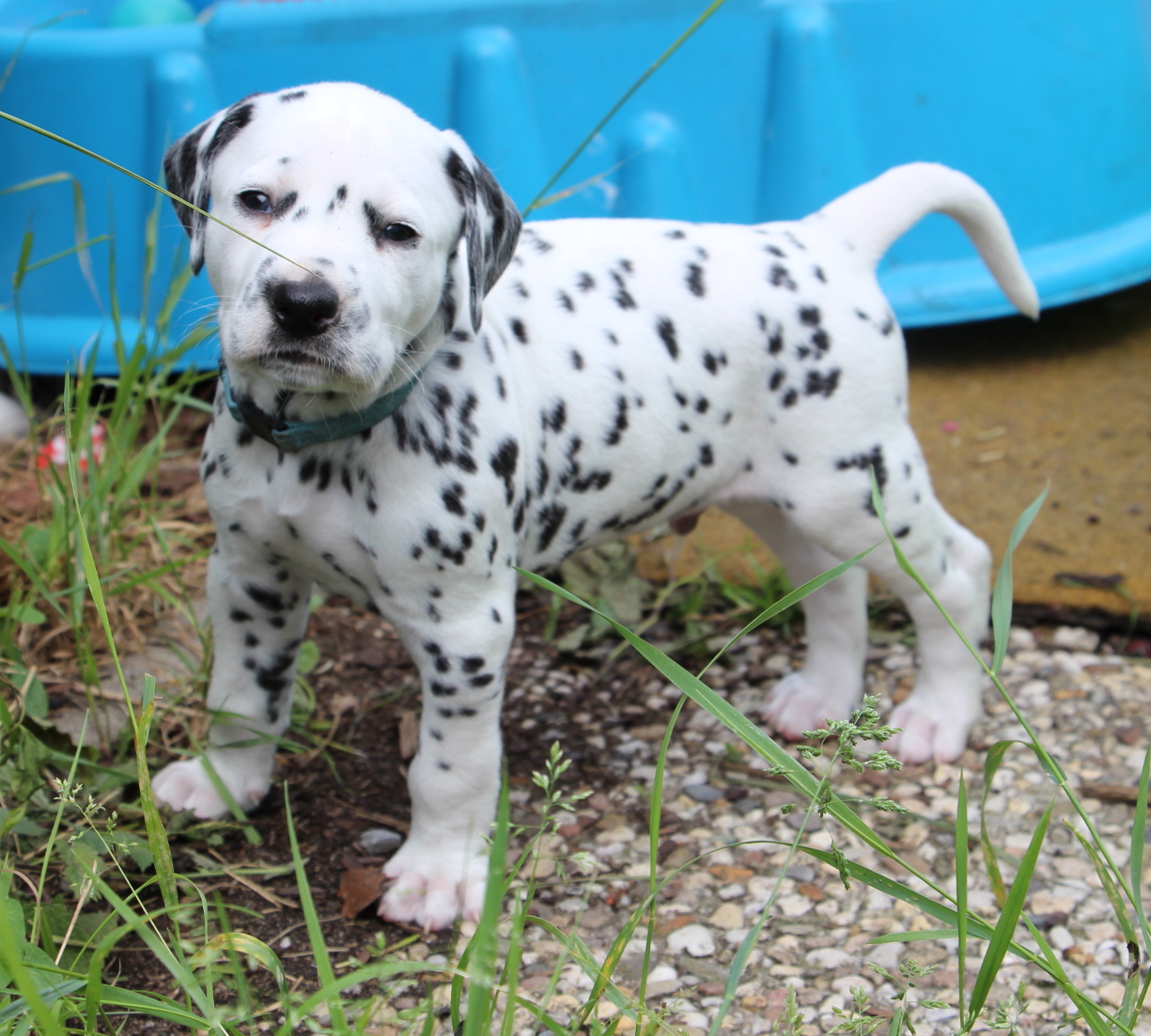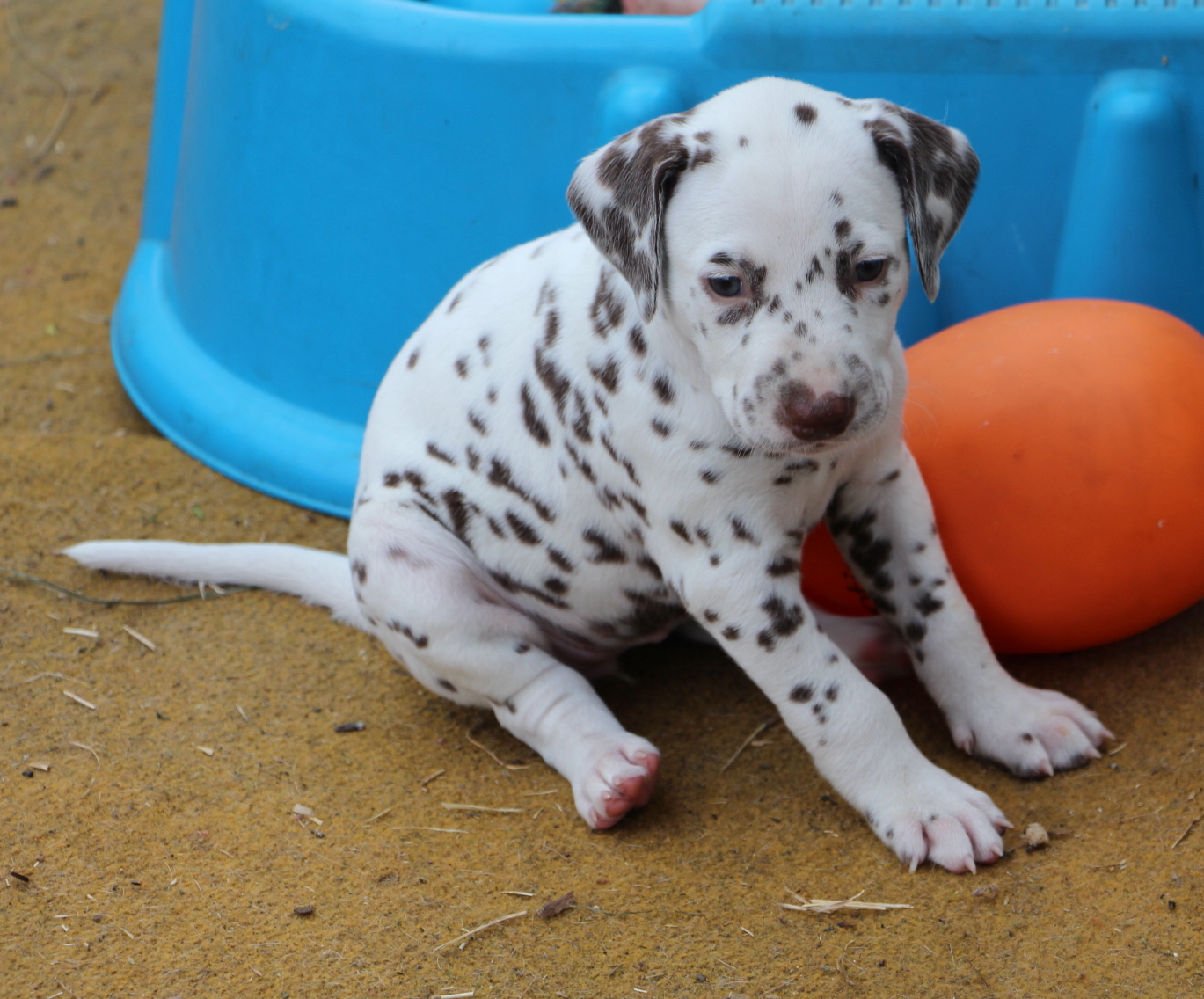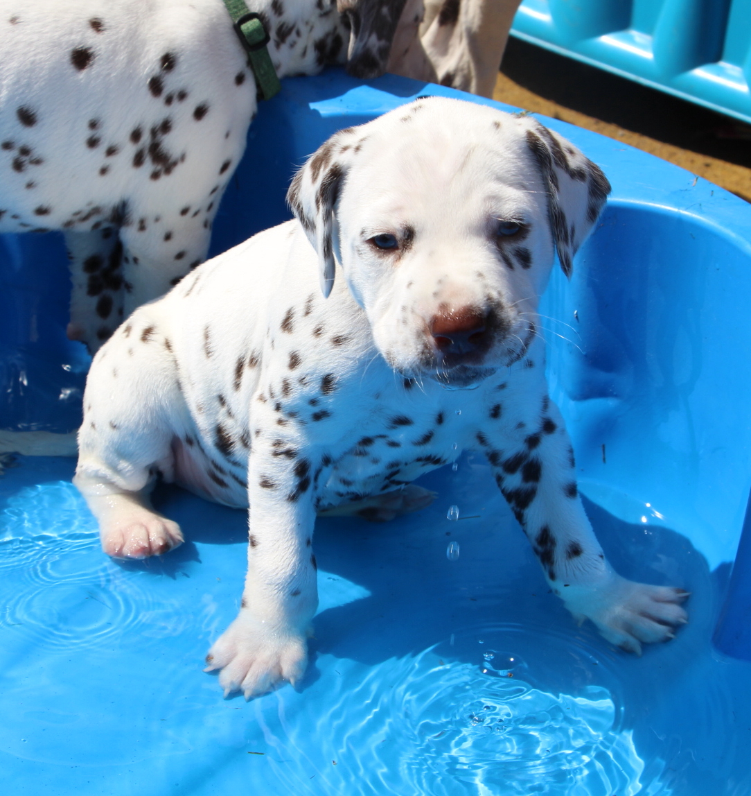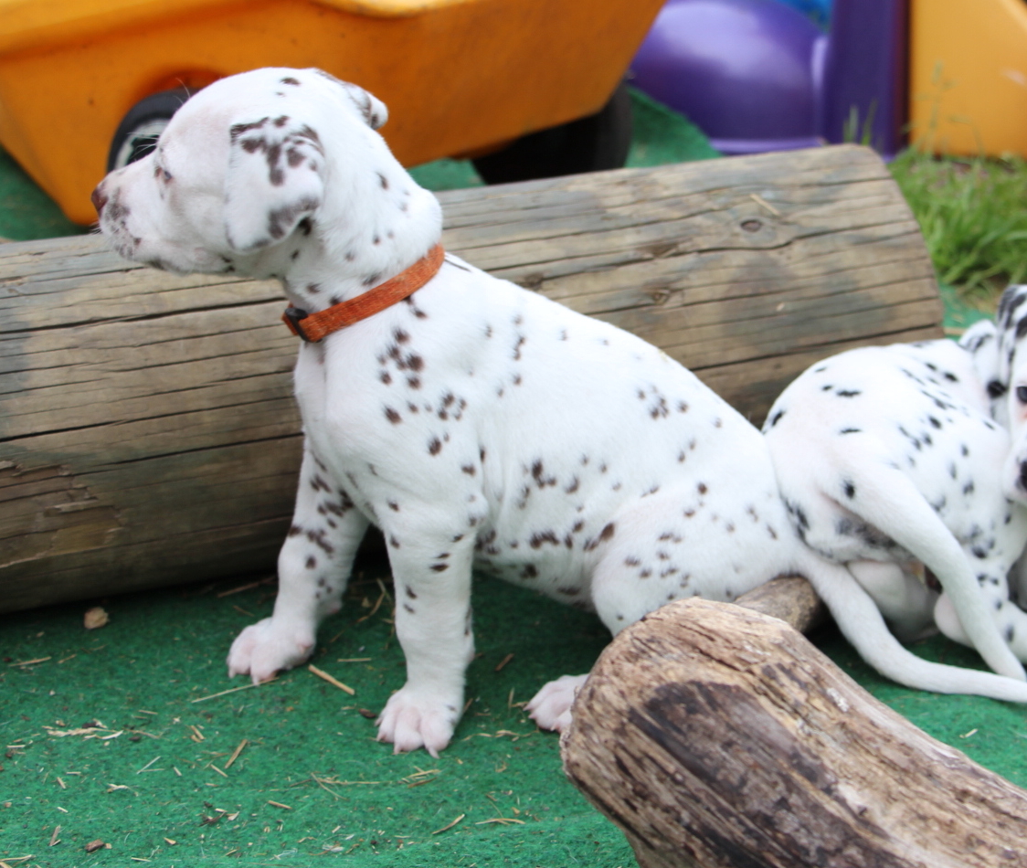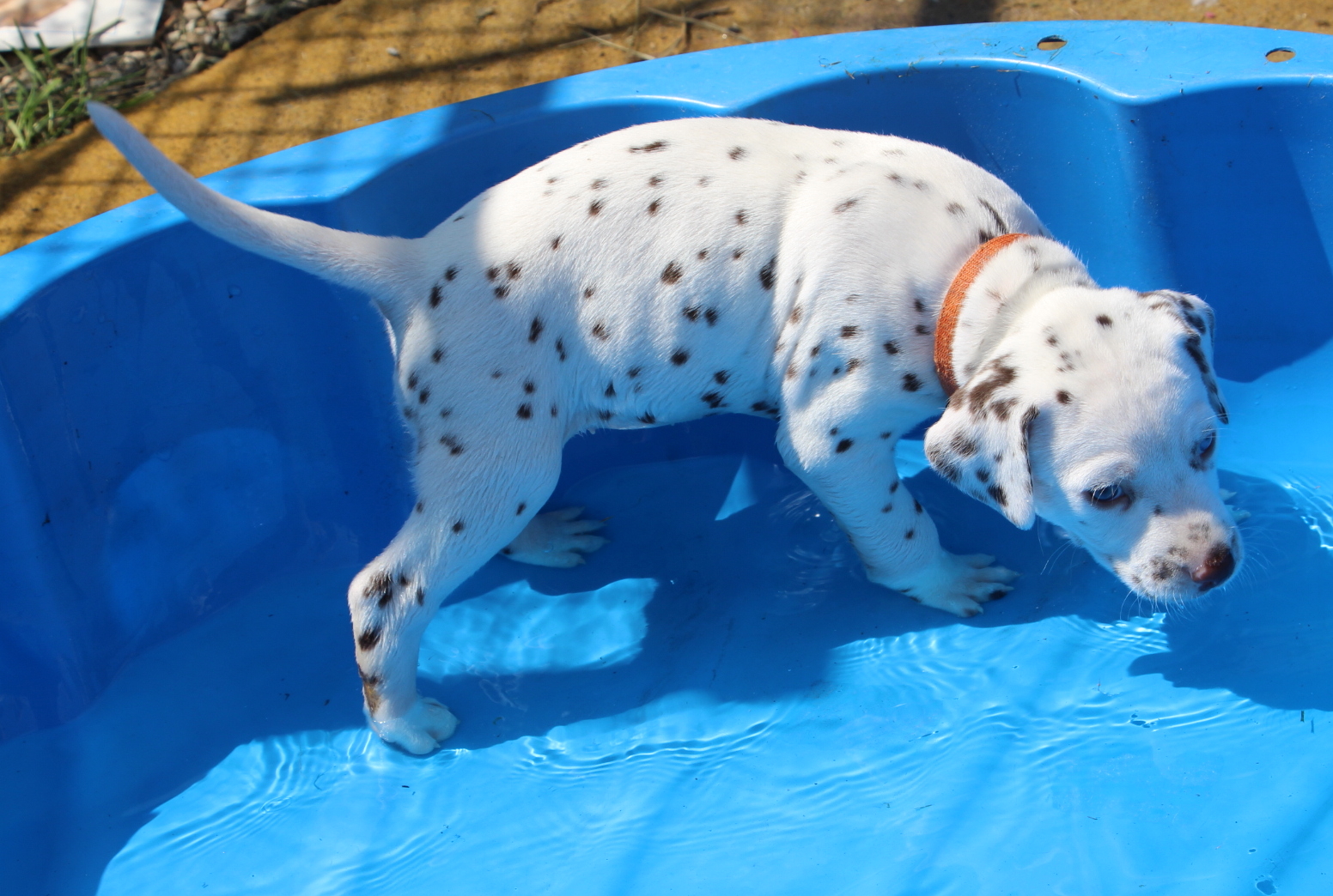 Die Welpen erkunden im Welpenhaus und im Auslauf täglich mehr und können dort frei selbst rein und rausgehen.Alles wird neugierig frei erkundet.Es geht durch die Tür hinaus;über den Kreisel ;durch das Bällebad und durch die Raupe.Das ist schon toll mitanzusehen ,wie sie es wie selbstverständlich alles ausprobieren.Am beliebtesten ist der Kreisel,wo sie schon balancieren müssen und motorisch total dazulernen.-Aber auch der wird mit Leichtigkeit gemeistert.--Auch die Raupe ist toll --wie ein Tunnel --aber auch eine Höhle und schön schattig ist es dadrin.Gefüttert wird jetzt 5 Mal am Tag --und es schmeckt ! Auch gab es jetzt die 2.Wurmkur.Die ganze Umwelt wird bewußt wahrgenommen und Besuch wird immer herzlich begrüßt !Alles wird ausprobiert und angeknabbert und die Neugier ist groß!Die Spielphasen werden immer länger aber danach wird auch immer ordentlich geschlafen und gekuschelt.Bei den sehr warmen Temperaturen wird jeder Schattenplatz genutzt und so haben wir jetzt auch die Sonnenschirme aufgespannt.