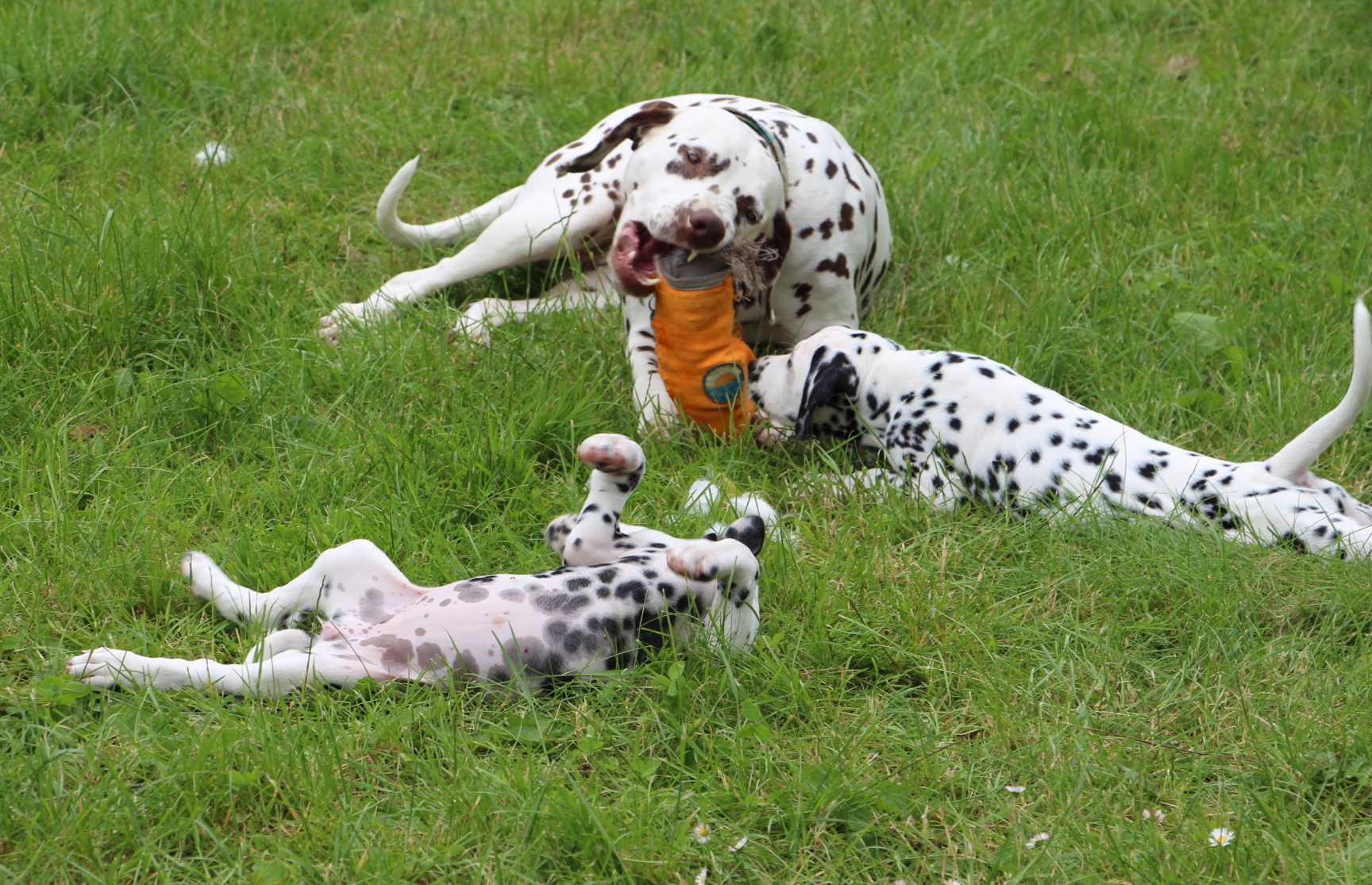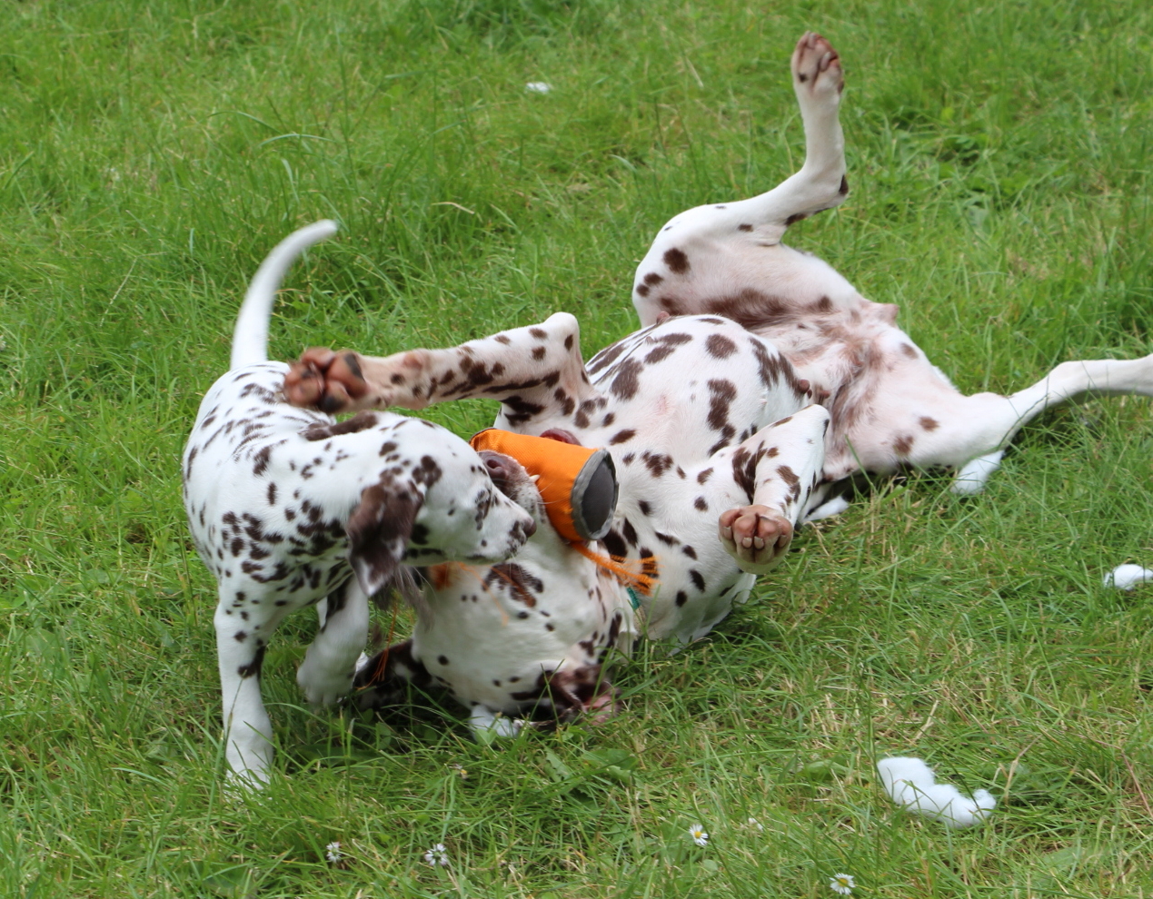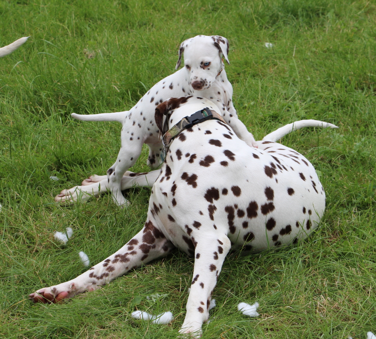 Eine schöne 8.Woche haben die Welpen erlebt.Mitte der Woche war die Gehöruntersuchung mit dem Ergebnis :alle Welpen hören!!! --22 von 24 Öhrchen hören.Auch das Chipen und Impfen ist nun geschehen.Jetzt steht noch die Wurfabnahme durch den Zuchtwart an.Ganz viel Zeit war dann noch um auf dem großen Grundstück zu spielen ;zu laufen ;mit den Großen zu rennen ;ein wenig Gartenarbeit zu verrichten;mit Besuch zu kuscheln,schmusen und spielen und wieder in der Wohnung alles zu untersuchen , während Fernseher und andere Geräte laufen.Wir freuen uns ,daß sich die Welpen so toll entwickelt haben und sie nun bereit sind die große weite Welt zu entdecken und bei ihren Familien auf eigenen "Füßen" zu stehen !!!