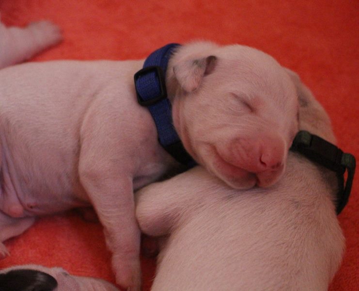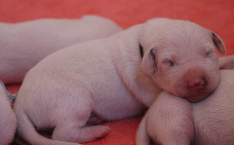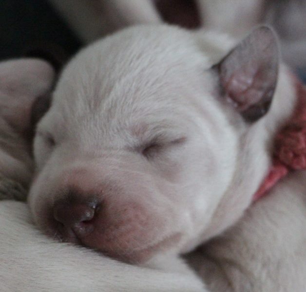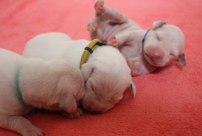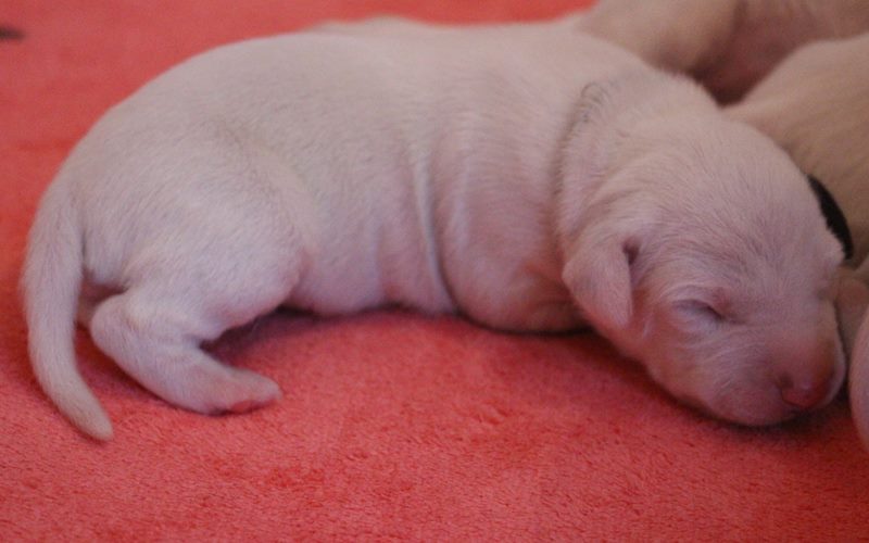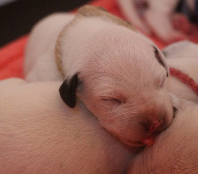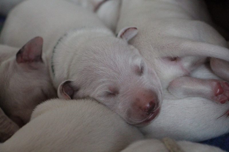 Direkt mit der Geburt hat die neonatale Entwicklungsphase der Welpen begonnen-die Welpen werden mit geschlossenen Augenlidern und Gehörgängen geboren und werden als Nesthocker bezeichnet.Sie sind nun auf intensives Brutpflegeverhalten von Emma angewiesen.Auch können sie ihre Körpertemperatur noch nicht selbst regulieren und sind auf Körperkontakt zu Emma und ihren Geschwistern angewiesen.Tast und Geruchssinn sind bereits ausgeprägt und Berührungsreizen wird bereits ausgeprägt begegnet.Die neonatale Phase erstreckt sich über die ersten 2 Lebenswochen der Welpen.