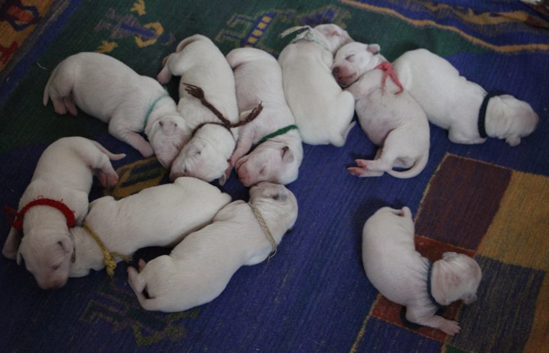 Die Welpen nehmen alle schön zu und werden von Emma super versorgt und gepflegt!Auch die Krallen haben wir schon gekürzt,was die Welpen problemlos zuließen.