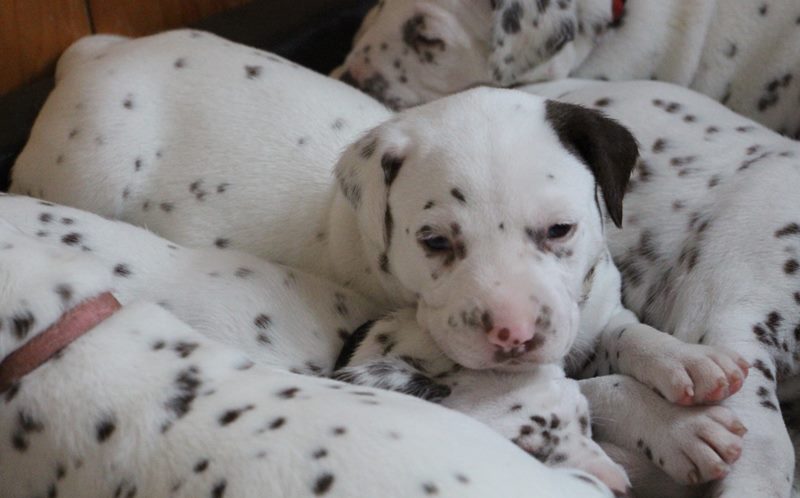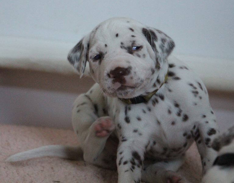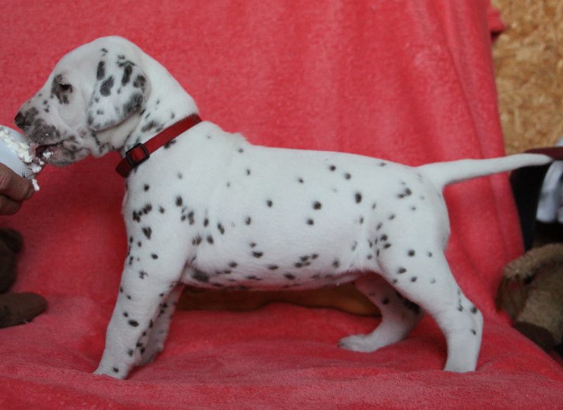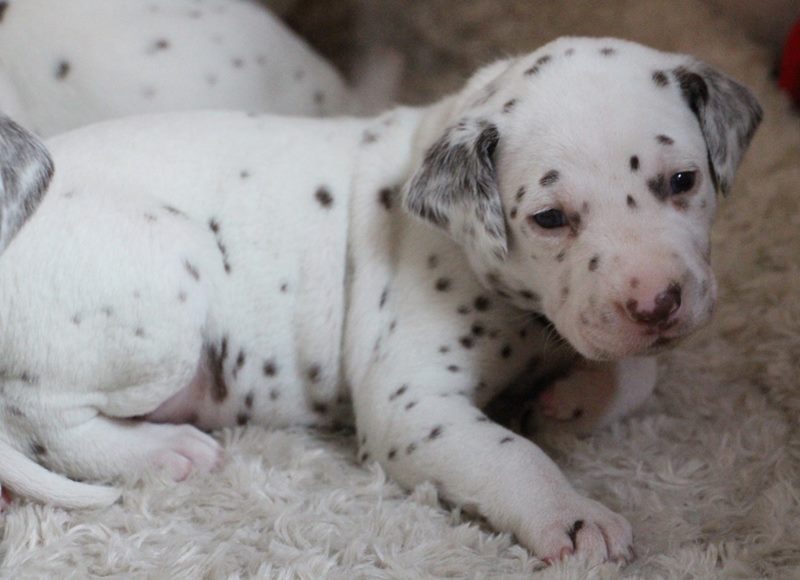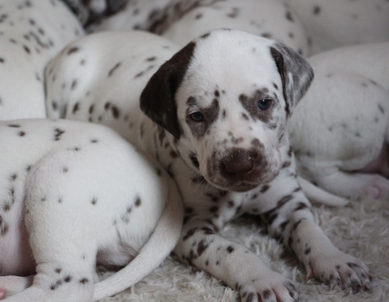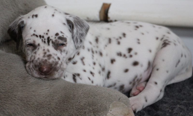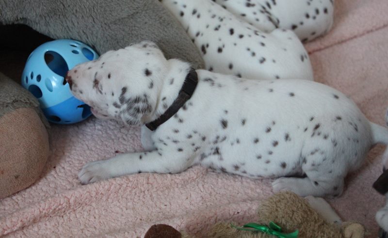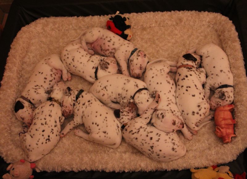 Hallihallo !--Uns geht es Spitze!--Wir haben 2 Mamas --unsere allerallerbeste Dalmimama und unsere 2.Mama.-Die bringt immer Futter mit und da ist noch Joghurt drüber !-Lecker !!! Sie sagt wir sollen gut essen,damit wir groß und stark werden.--Was soll ich Euch sagen---wir essen gut --und abends immernoch Rindertartar !-Wir haben auch schon ordentlich zugenommen von 2170 bis 2960 Gramm! Mama 2 sagt wir wären ganz schön neugierig!