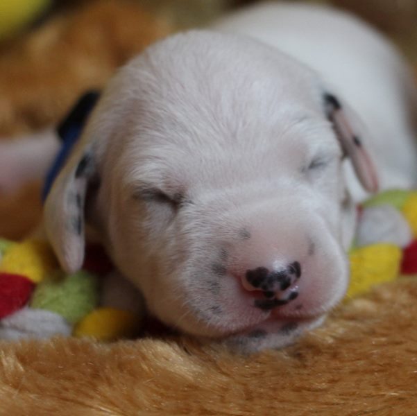 Herr Blau ,ein weiß/schwarzer Rüde -geboren um 2.01 Uhr mit einem Geburtsgewicht von 320 Gramm!!