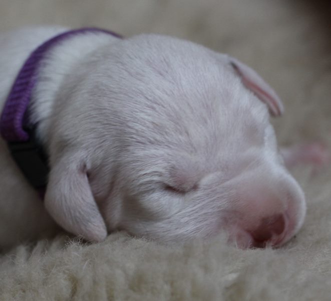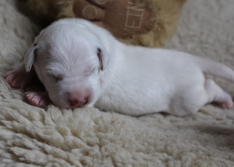 Fräulein Lila ,eine weiß/braune Hündin --geboren um 3.45 Uhr mit einem Geburtsgewicht von 330 Gramm!!