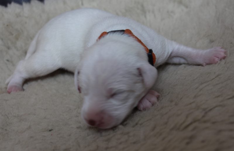 Fräulein Orange ,eine weiß/braune Hündin -geboren um 23.34 Uhr mit einem Geburtsgewicht von 400 Gramm!