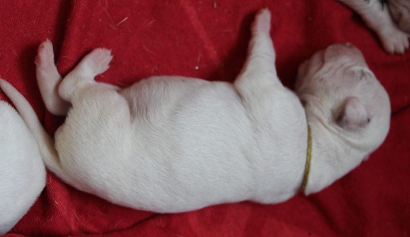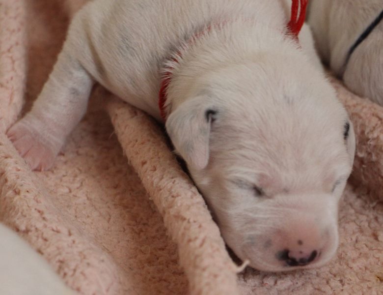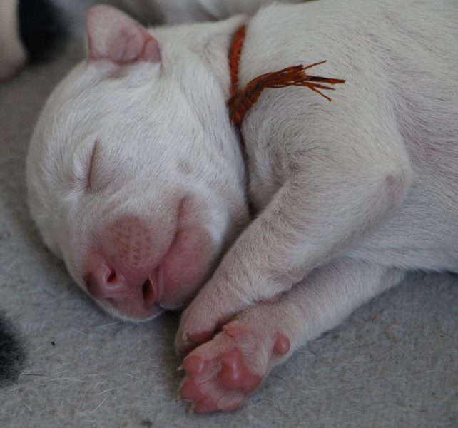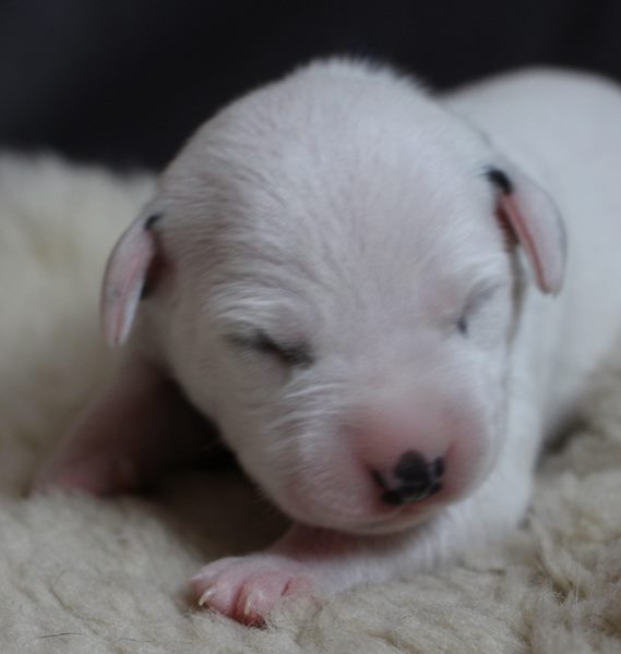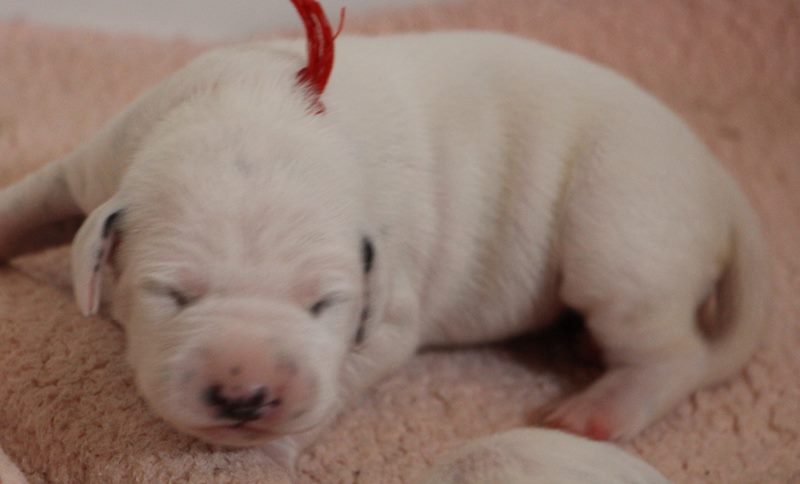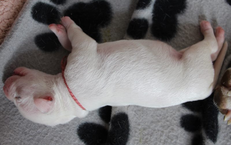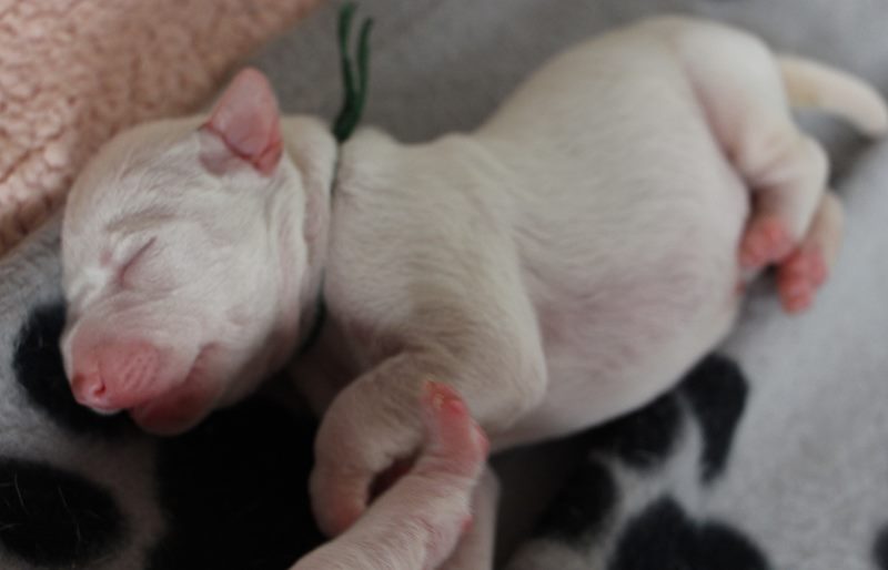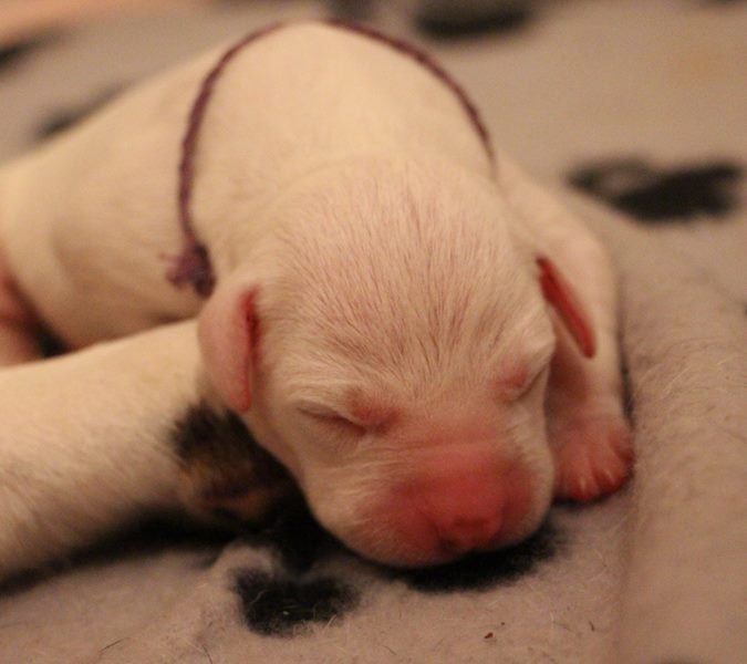 Fräulein Rot ,eine weiß/schwarze Hündin --geboren um 0.06 Uhr mit einem Geburtsgewicht von 410 Gramm!!
