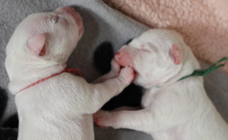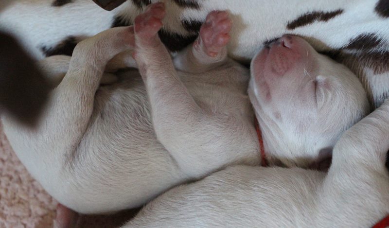 Direkt mit der Geburt hat die neonatale Entwicklungsphase der Welpen begonnen-die Welpen werden mit geschlossenen Augenlidern und Gehörgängen geboren und werden als Nesthocker bezeichnet.Sie sind nun auf intensives Brutpflegeverhalten von Tiffy angewiesen.Auch können sie ihre Körpertemperatur noch nicht selbst regulieren und sind auf Körperkontakt zu Emma und ihren Geschwistern angewiesen.Tast und Geruchssinn sind bereits ausgeprägt und Berührungsreizen wird bereits ausgeprägt begegnet.Die neonatale Phase erstreckt sich über die ersten  2 Lebenswochen der Welpen.