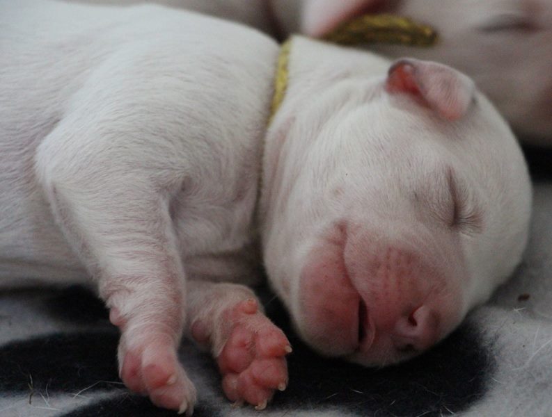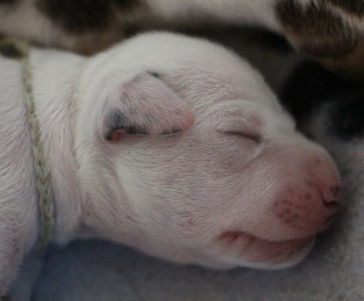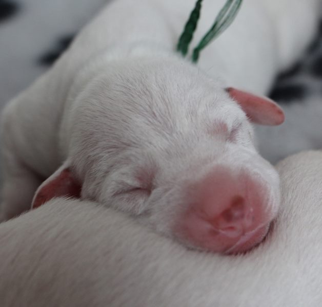 Fräulein Rosa ,eine weiß/schwarze Hündin -geboren um 2.17 Uhr mit einem Geburtsgewicht von 350 Gramm!!