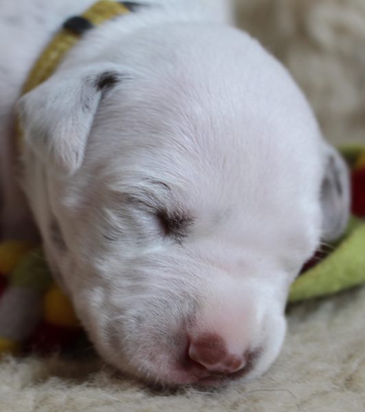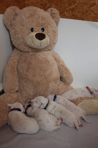 Sammeln Sie auch Punkte???--Unsere supersüßen Welpen aus dem X-Wurf auf jeden Fall !Nach und nach sind immer deutlicher die Punkte zu erkennen--jeder ganz individuell --aber soo schön !!!Die Welpen sind schon richtig flott und klettern schon auf meinen Schoß !--Sie lieben die Nähe und kuscheln schon jetzt gerne !Die Augen haben angefangen sich zu öffnen!Die Entwicklung geht jeden Tag voran!