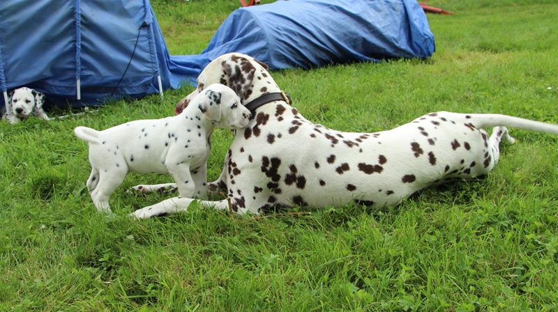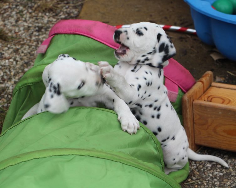 Jeden Tag gehen die Welpen jetzt über das ganze Grundstück in die große Wiese und erkunden dort alles.Es wird gespielt,gerannt ,gewälzt,die Ecken erkundet,durch Reifen geturnt und wenn sie müde sind wird einfach in der Wiese in der Sonne geschlafen!Auch die großen Hunde sind wieder dabei und spielen mit den Welpen oder bremsen sie auch mal aus !
