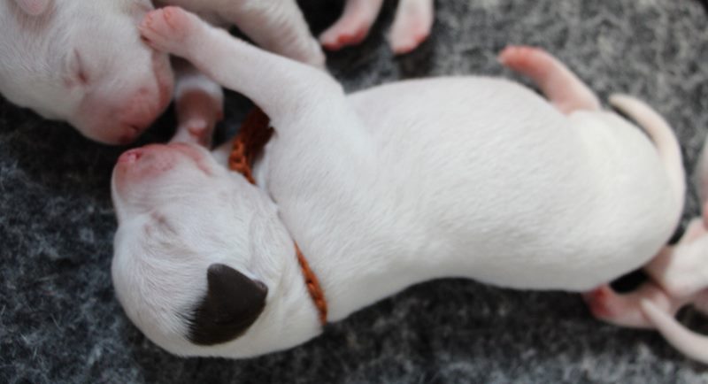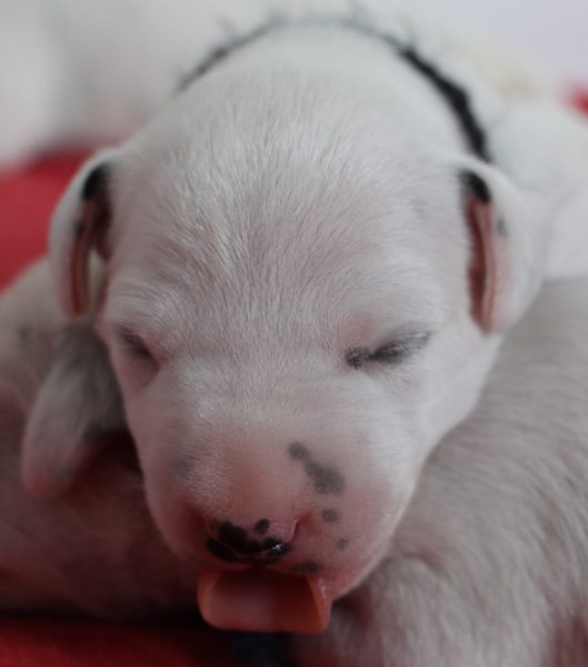Direkt mit der Geburt hat die neonatale Entwicklungsphase der Welpen begonnen-die Welpen werden mit geschlossenen Augenlidern und Gehörgängen geboren und werden als Nesthocker bezeichnet.Sie sind nun auf intensives Brutpflegeverhalten von Emma angewiesen.Auch können sie ihre Körpertemperatur noch nicht selbst regulieren und sind auf Körperkontakt zu Emma und ihren Geschwistern angewiesen.Tast und Geruchssinn sind bereits ausgeprägt und Berührungsreizen wird bereits ausgeprägt begegnet.Die neonatale Phase erstreckt sich über die ersten  2 Lebenswochen der Welpen.