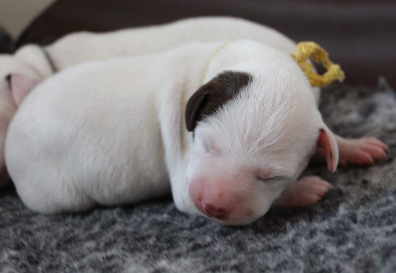 Herr Braun,ein weiß/brauner Rüde - geboren um 12.09 Uhr mit einem Geburtsgewicht von 400 Gramm!
